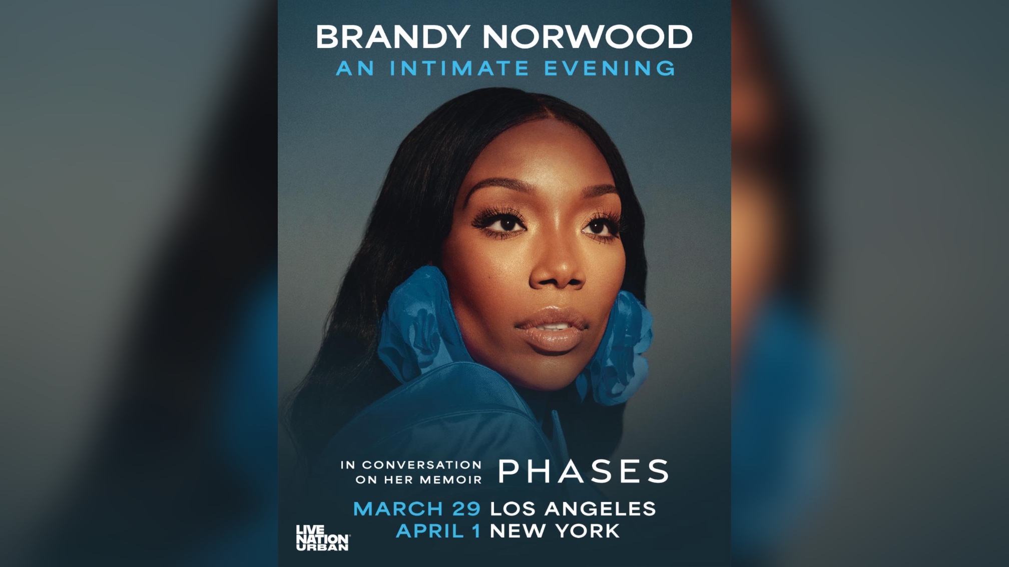 (Los Angeles, CA) — February 5, 2026 – Today, Live Nation Urban (LNU) and multi-platinum, Grammy-winning singer, producer, actress, and global icon, Brandy Norwood, announce “A Conversation With Brandy: Phases Book Tour.” The tour will see Brandy take the stage for intimate conversations in Los Angeles and Brooklyn, celebrating her debut memoir, Phases (out March 31) and the extraordinary journey behind her legendary career.