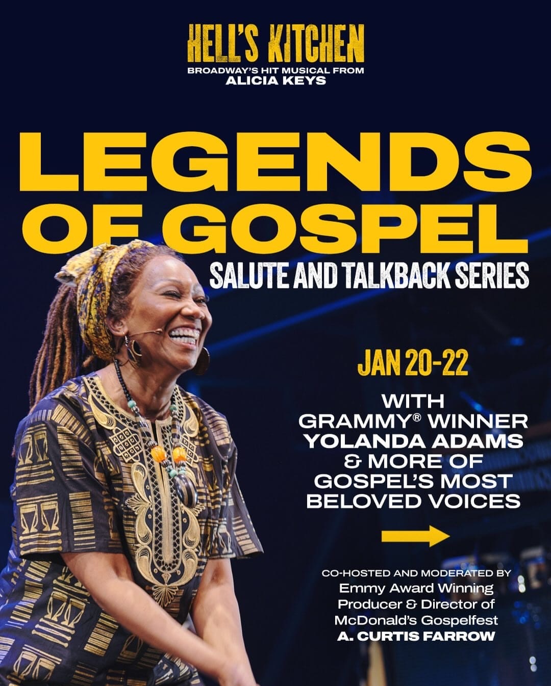 Audiences attending select performances will also be invited to a special post-show talkback featuring Yolanda Adams, members of the cast, and the honored gospel legends. These conversations will explore creatively cultivating dreams and aspirations, doing the work required to manifest vision and purpose, and discovering how music and message align throughout the creative journey. Each performance will conclude with a special musical surprise.
