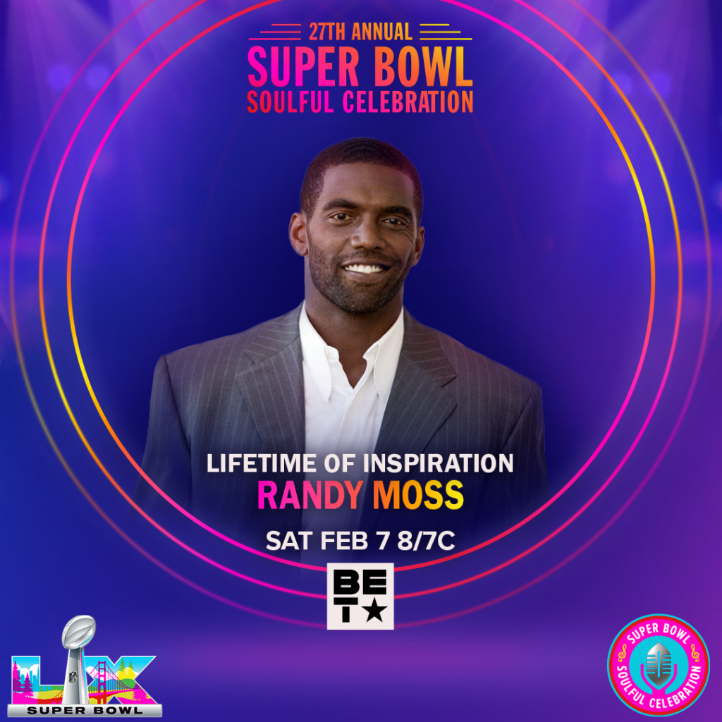 As a player, broadcaster, mentor, and cultural icon, Randy Moss continues to inspire generations to push boundaries, own their greatness, and go higher, making him a fitting recipient of the Lifetime of Inspiration Award.
